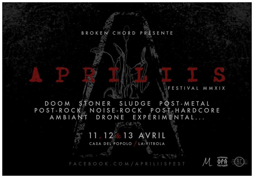 Alors que l’on passe nos journées à aspirer plus de flocons que d’oxygènes les trublions de Broken Chords ont annoncé le line up de « Apriliis Festival » qui se déroulera le 11, 12 et 13 avril 2019 à la Casa Del Popolo.
