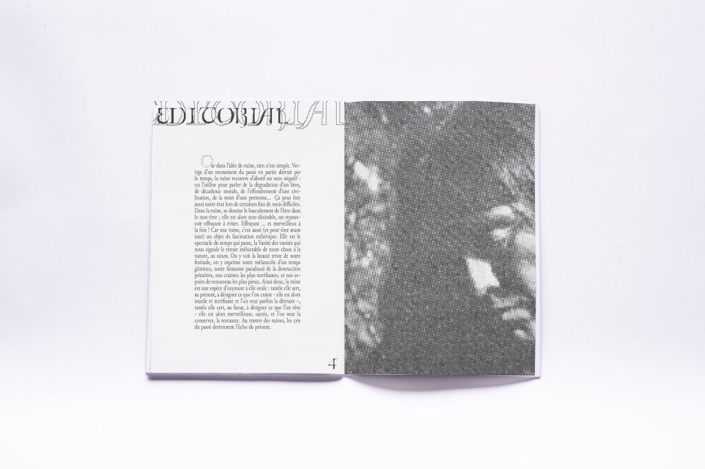 Pour ce premier numéro spécial, la revue RUINE(S) dresse réflexions et questionnements sur l’esthétique, la poétique et l’actualité de la ruine, à une époque où tout s’effondre. Essais, interviews, poèmes, photographies, mais aussi musiques (enregistrées sur K7 intégrée à la revue) sont au rendez-vous, entre collapsologie, noise rock bruitiste et romantisme.